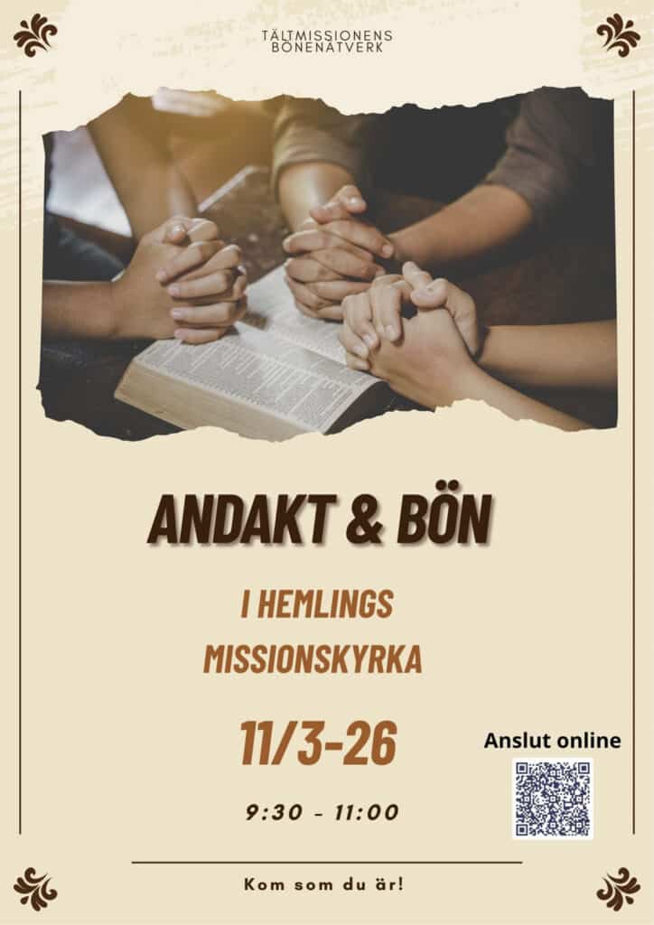Välkommen till Hemlings Missionskyrka nu på onsdag den 11/3 kl 9.30 och var med och be för Sverige och för inlandet. Om man inte har möjlighet att närvara på plats finns möjligheten att koppla upp