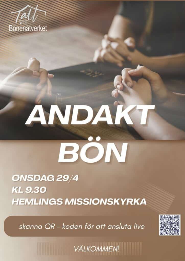 Välkommen till Hemlings Misssionskyrka nu på lördag den 18/4 kl 9.30. Ta del av undervisning om Uppenbarelseboken, och var med och be för Sverige och inlandet. Om du inte har möjlighet att närvara på plats finns