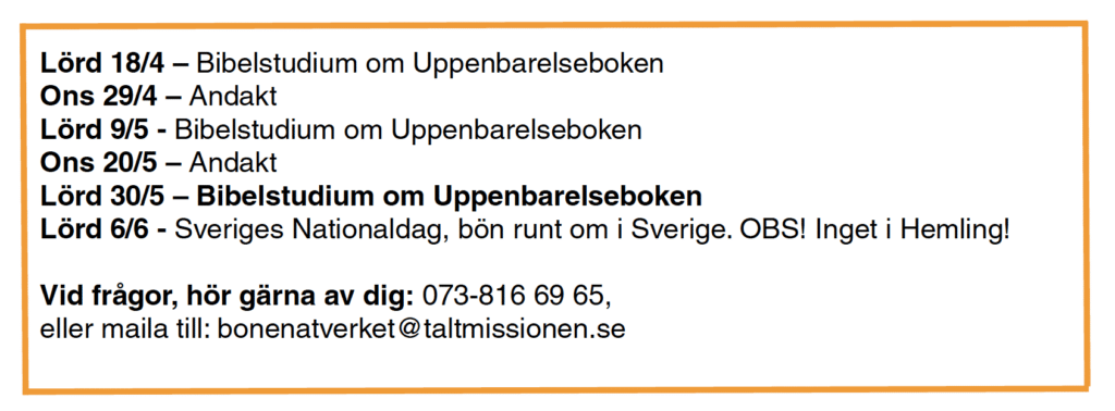 Vi i bönenätverket är just nu inne i en fas där vi fördjupar oss i Uppenbarelseboken. Ett väldigt viktigt och relevant ämne idag. Vi är fullt medvetna att Uppenbarelseboken kan upplevas svår att förstå, därför känner vi att vi vill förklara det på ett lättförståeligt sätt steg för steg.