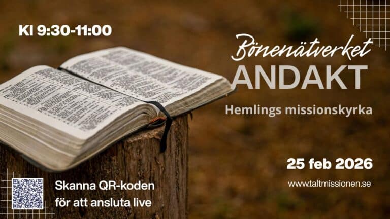 Nu på lördag den 29/11 kl. 9:30 träffas vi åter i Hemlings Missionskyrka för ett bibelstudium och för att be tillsammans för byarna runtom i Norrland, och för Sverige. Var med du också, på plats