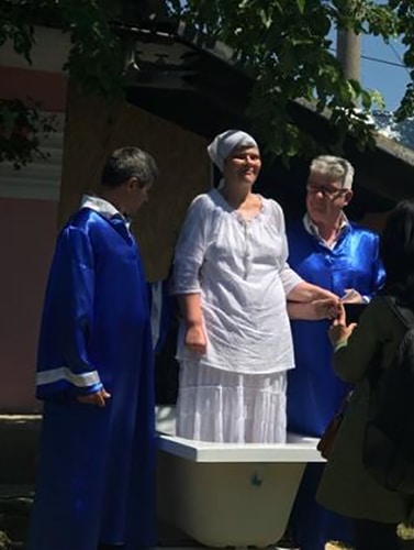 På vår sommarkonferens vid Svarta havet tog hon emot Jesus. Det var förra året. Och under hösten växte hennes längtan att döpas, och nu var det dags. Jag har nog aldrig sett en gladare människa. Mirelas ansikte verkligen lyste av glädje och tacksamhet. När hon restes ur badkaret, nydöpt och salig, utropade hon Halleluja!!