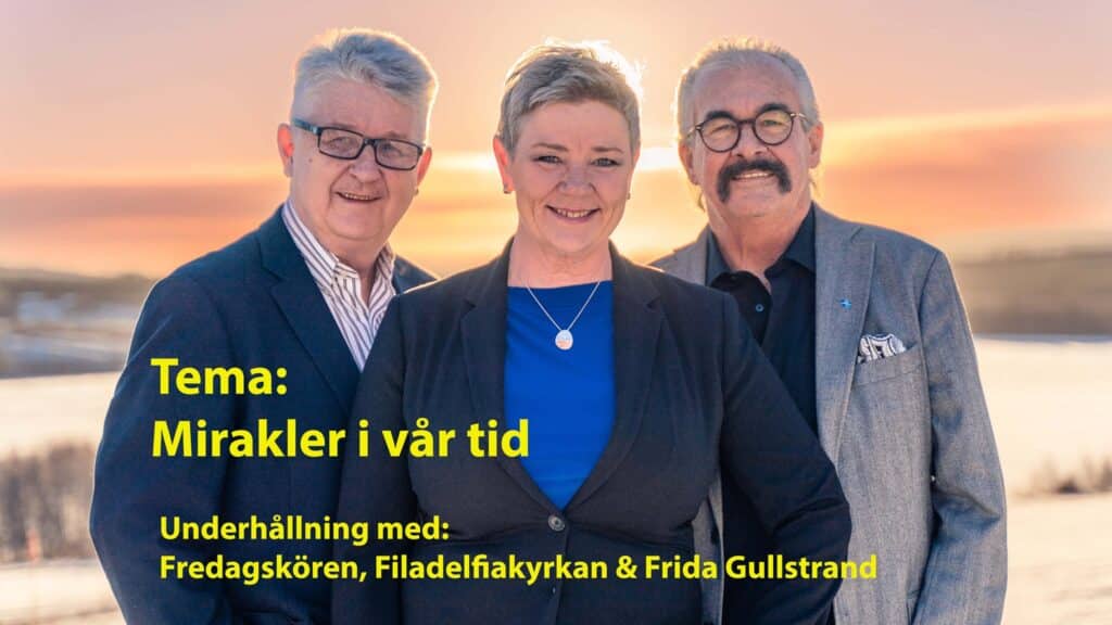 Det är Jan-Olof Sundin som håller föredrag och värd i studion är Gunnar Johansson. För underhållningen står: Lovisa Tholerud, Alfred Nygren & New Wine Sverige.