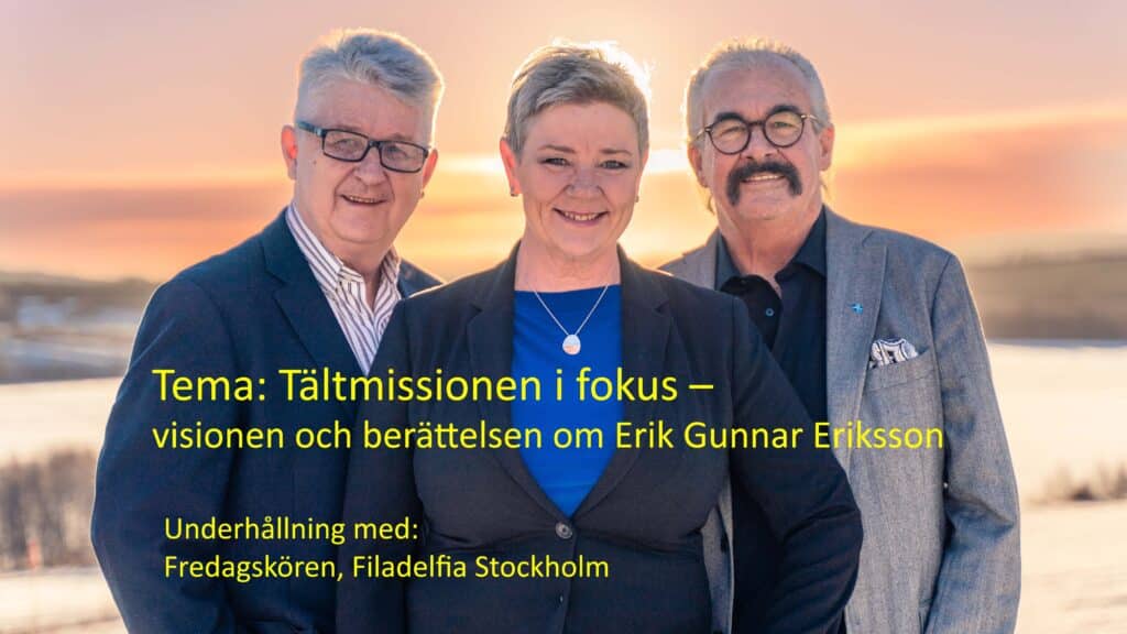 Välkommen till veckans avsnitt av podcasten 100% Liv. Temat för denna vecka är: Tältmissionen i fokus. Vi får höra om visionen och grundaren Erik Gunnar Erikssons spännande liv och arbete. För underhållningen står Fredagskören, Filadelfia Stockholm.