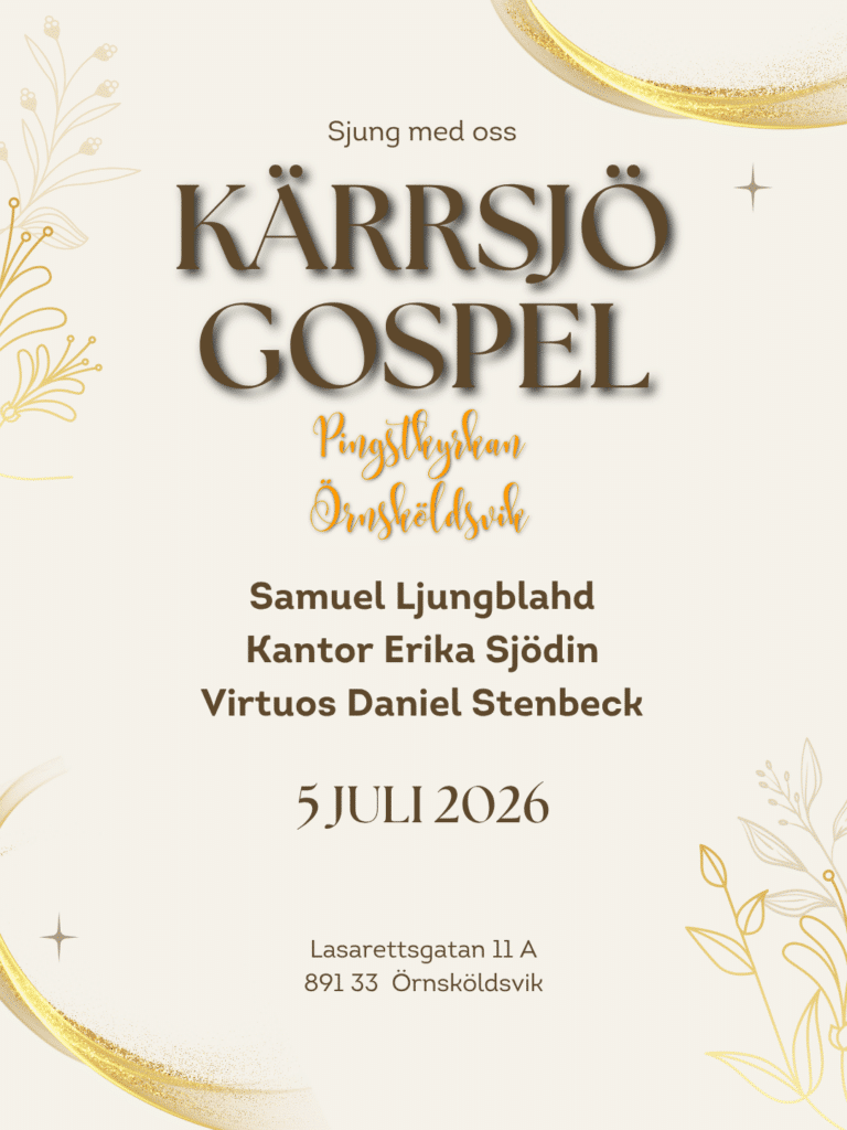 Och löftet från förra sommarens konferens står fast: Den 5 juli samlas alla som vill sjunga till Kärrsjö Gospel i Pingstkyrkan i Örnsköldsvik. När Samuel Ljungblahd lovade en gospelkör inför nästa år, tog vi honom på orden – och nu får vi genomföra en konsert under kantor Erika Sjödins ledning, och till virtuosen Daniel Stenbecks ackompanjemang.
